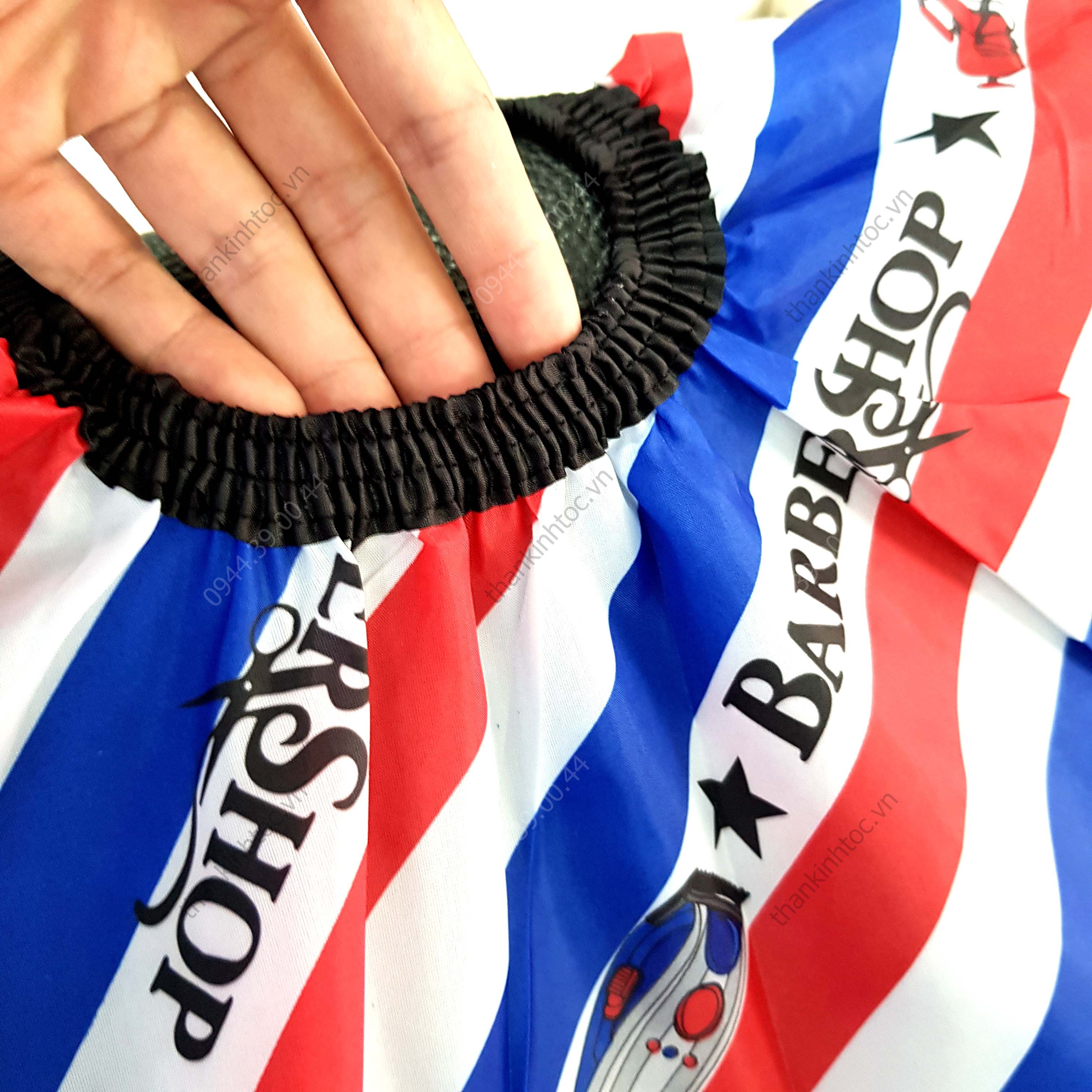 - Áo choàng cắt tóc Barber sử dụng khóa cài, cổ chun chính vì vậy có thể vừa tất cả các khách hàng từ bé tuổi đến lớn tuổi với các số đo cổ khác nhau.
