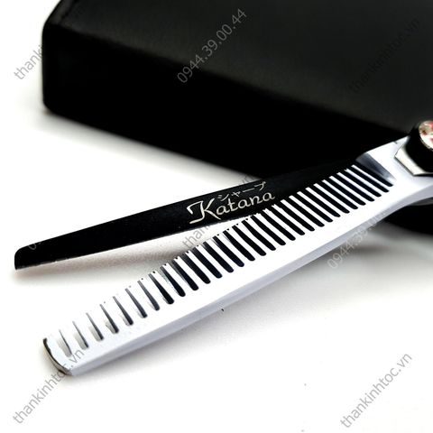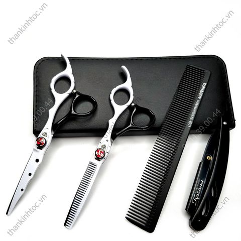 Bộ kéo cắt tỉa tóc chuyên nghiệp chính hãng Katana M8 trắng đen - Chính hãng 6.0 (Quà tặng)