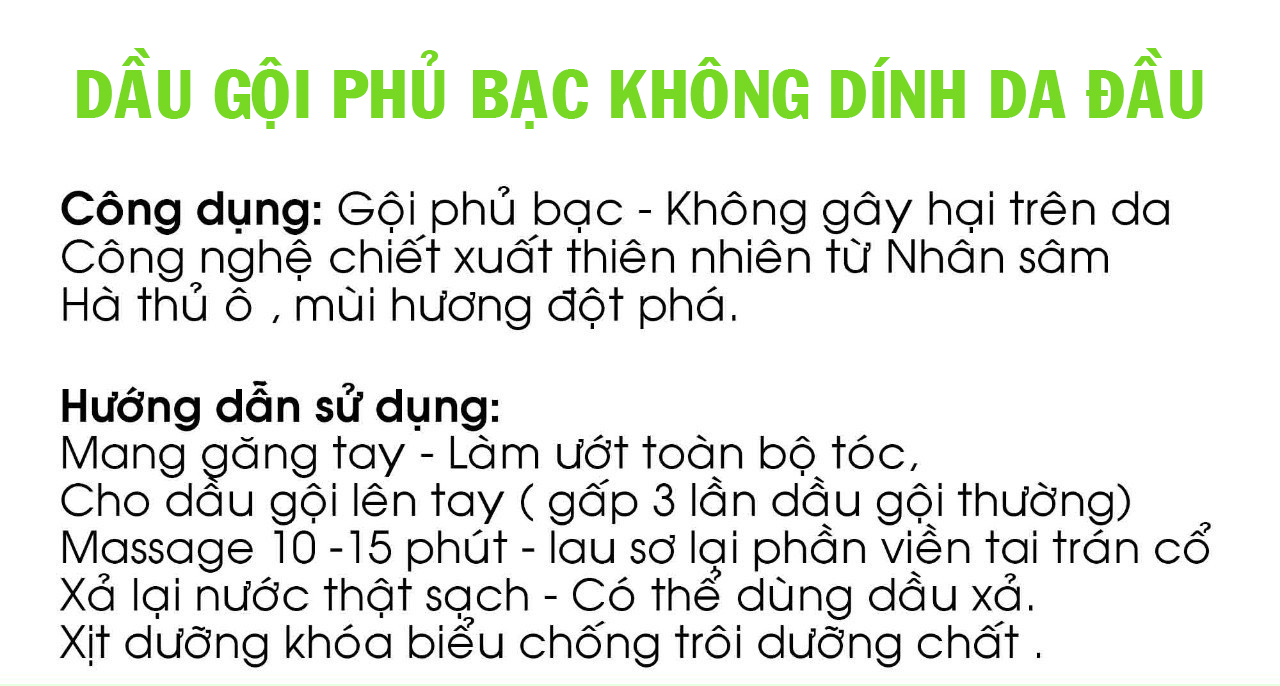 - Công nghệ mới gội nhuộm phủ bạc không dính da đầu.