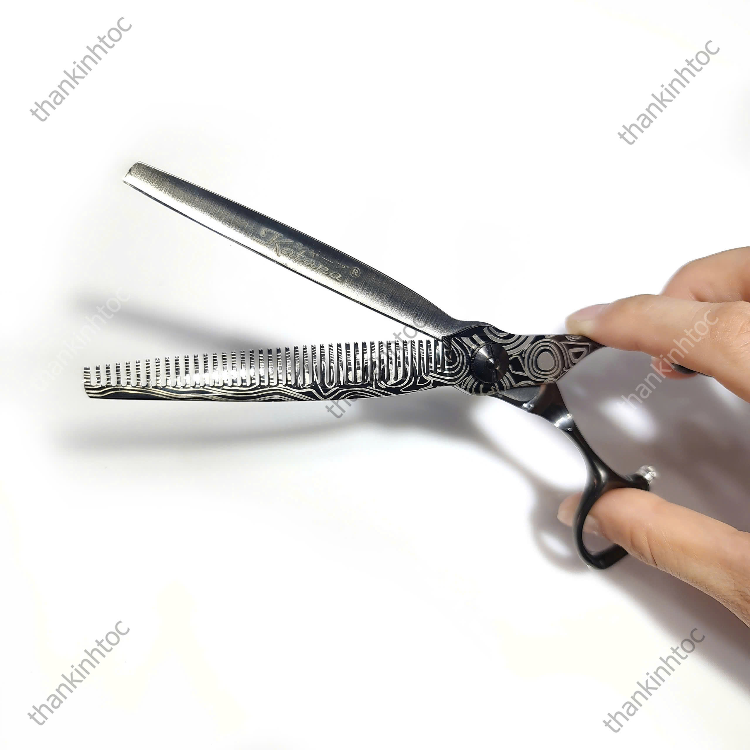 - Lưỡi kéo gia công tỉ mỉ, tinh xảo, đạt đến độ sắc bén chuẩn nhất. Nhờ đó mà khi thợ cắt tóc có thể di chuyển những đường kéo cắt rất ngọt, dễ dàng, không bị nghiến hay vấp kẹt tóc.
