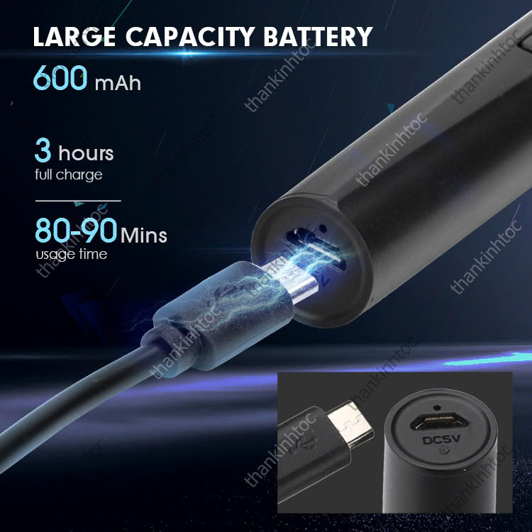 • Pin NI-MH: 600mAh, sạc đầy trong 3 giờ cho 90 phút sử dụng.