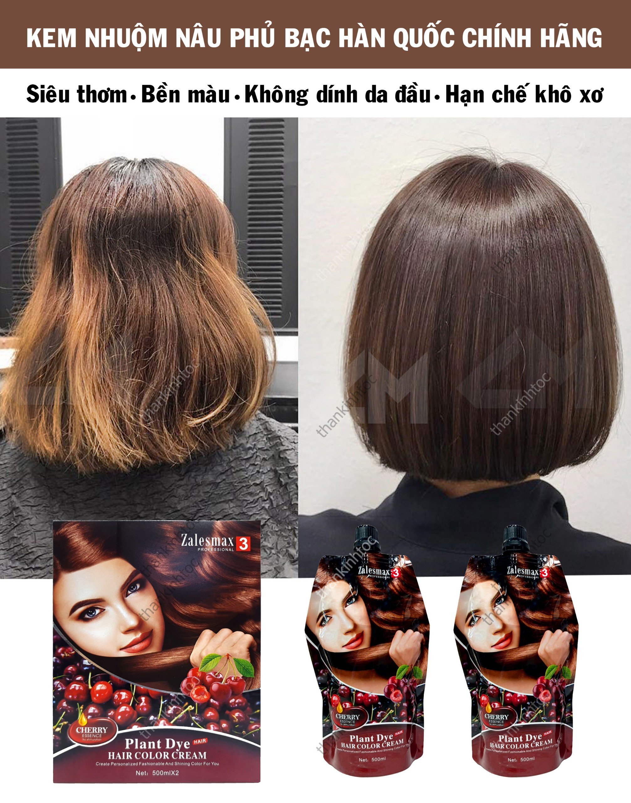 - Công nghệ mới nhuộm phủ bạc không dính da đầu.