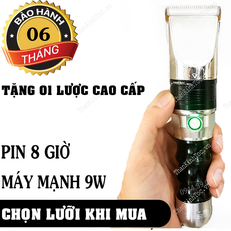 - Pin lâu tầm 8 giờ (Nếu dùng trong salon có thể cắt cho 40 khách), có đèn LED xanh chớp đỏ báo pin yếu trước 20 phút
